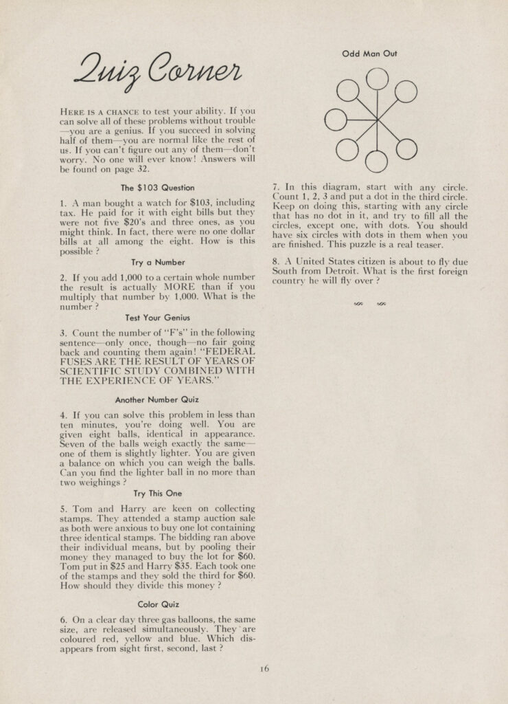 As the Corporate Archives’ resident Barkivist, I’m always on the case for a good head scratcher. Luckily, BMO employees in the 1940s and 1950s liked to stay sharp by challenging each other to brain teasers. In honour of National Puzzle Day, I dug up some brain teasers from our 1948 Staff Magazines. Call me Bones, Sherlock Bones.
