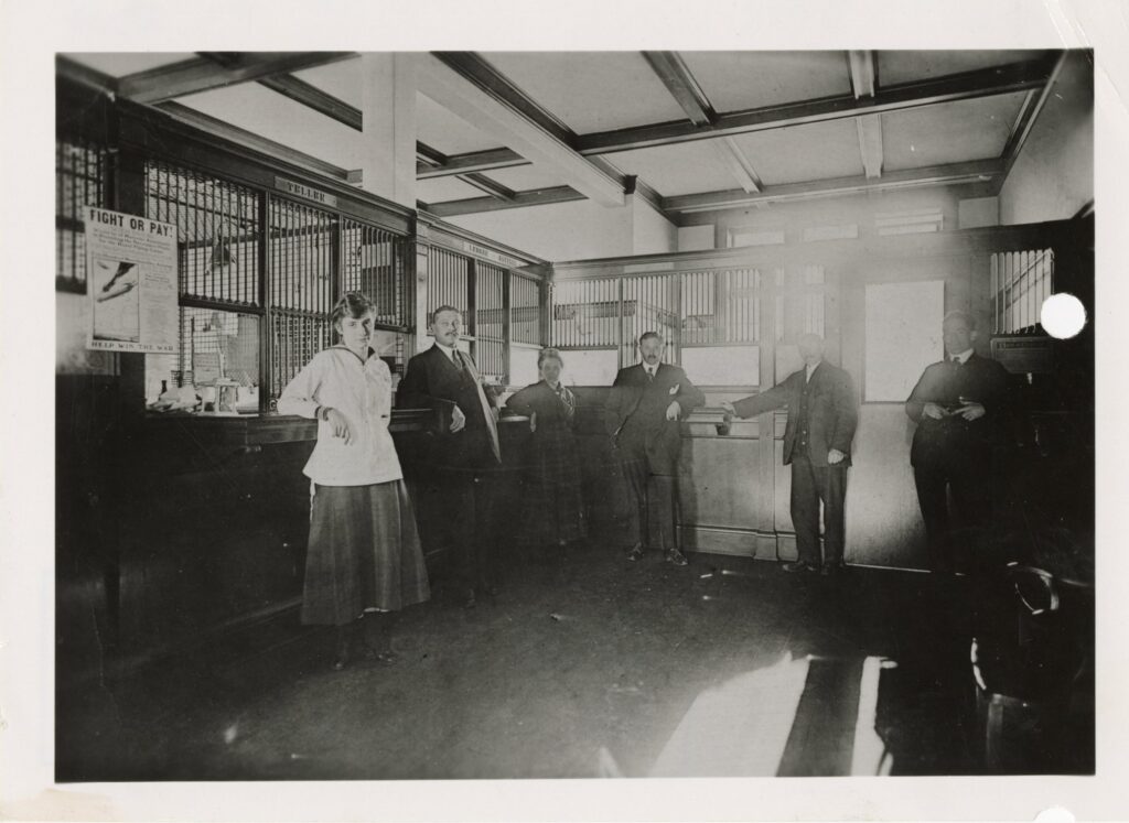 With male employees enlisting to fight in the First World War, women increasingly joined the bank to fill their positions. A bank circular dated January 24, 1917, reveals the positions for which women were now considered eligible: “It has been proven that women are quite capable of assuming the duties of ledgerkeeper, collection clerk and cash items clerk, and have in certain instances become efficient tellers…”